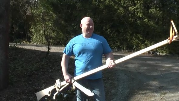 This isn’t the world’s safest or most practical weapon, but if you were going for the zombie kill of the week it would definitely put you in the running. Indeed—after the break you will bear witness to a homemade machete-shooting crossbow.