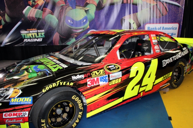 Four time Sprint Cup Champion Jeff Gordon will have some help trying to get a win at Charlotte Motor Speedway during the Bank of America 500 on October 13. His #24 Drive To End Hunger Chevrolet Impala will feature a team up with Nickelodeon’s latest show, Teenage Mutant Ninja Turtles, the latest in the popular franchise.